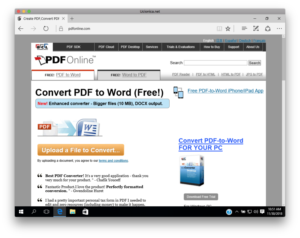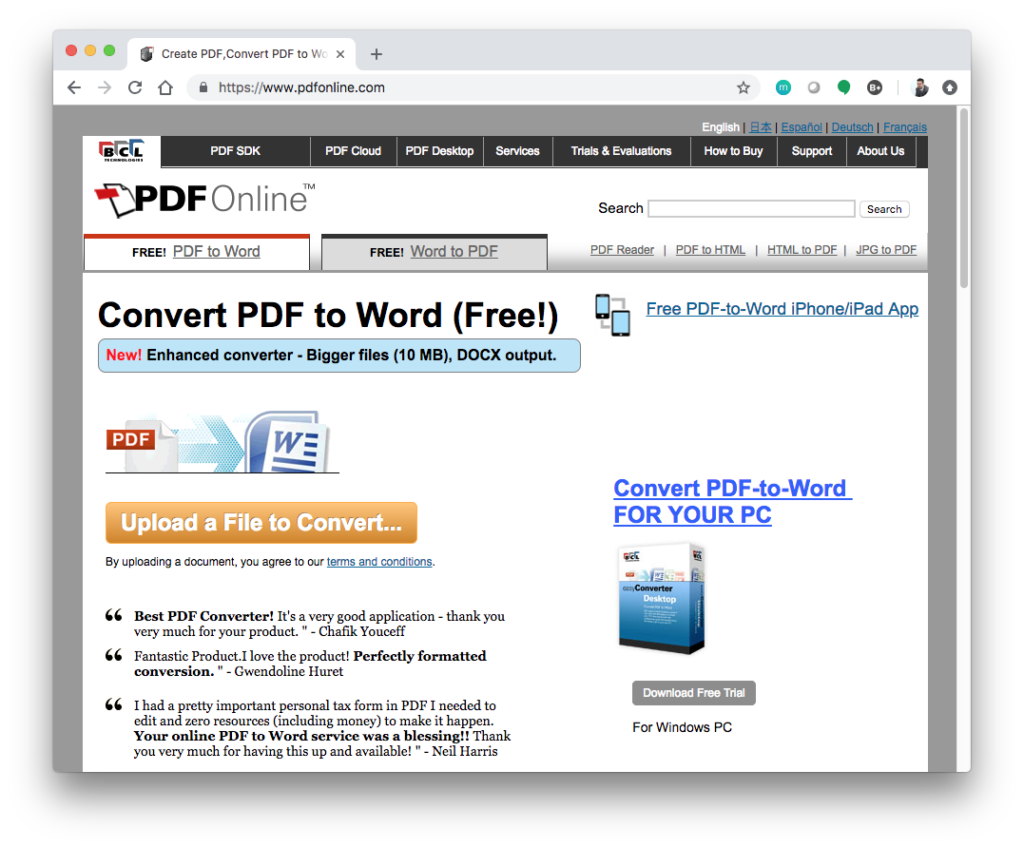 Pokrenite svoj omiljeni Internet pretraživač i posjetite pdfonline.com, te odaberite “Upload a File to Convert…” (Učitajte datoteku za konverziju…).