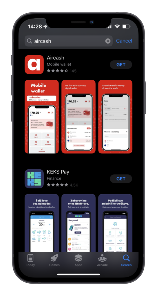 Aircash instalacija: slanje novca u inozemstvo