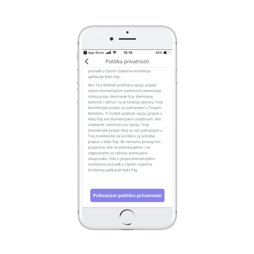 Isto tako ćete za nastavak trebati prihvatiti politiku privatnosti.