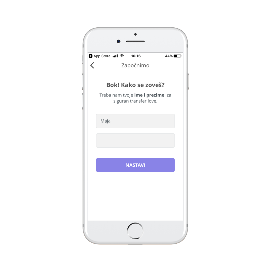 Kako bi transfer novca bio siguran i pouzdan, trebat ćete unijeti točno ime i prezime. Zatim pritisnite nastavi.