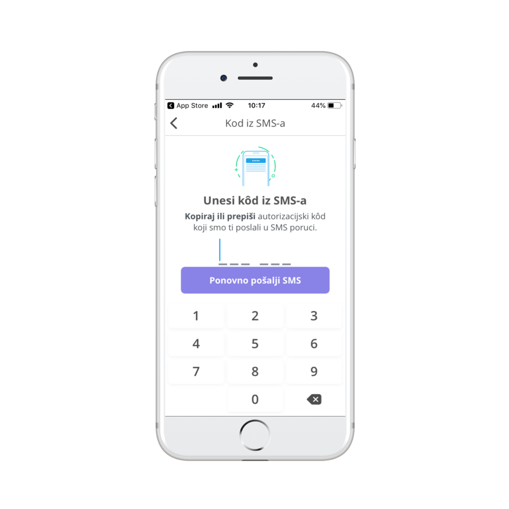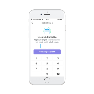 Na mobilni uređaj ćete u SMS-u zaprimiti autorizacijski kod koji trebate unijeti za nastavak.