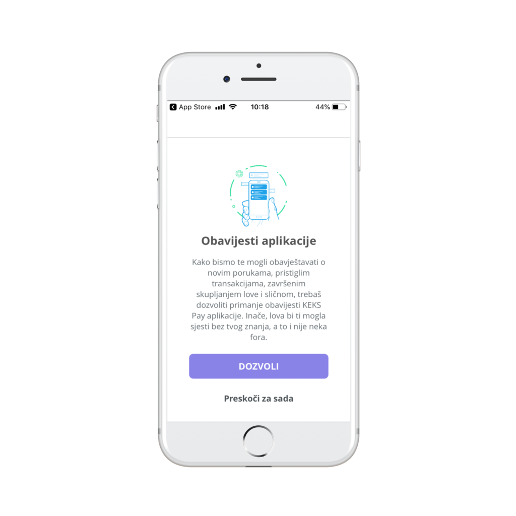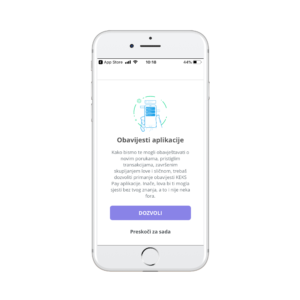 U idućem koraku ćete moći odabrati želite li primati obavijesti aplikacije. Pod obavijestima se podrazumijevaju one o novim porukama, pristiglim transakcijama, završenim skupljanjima.