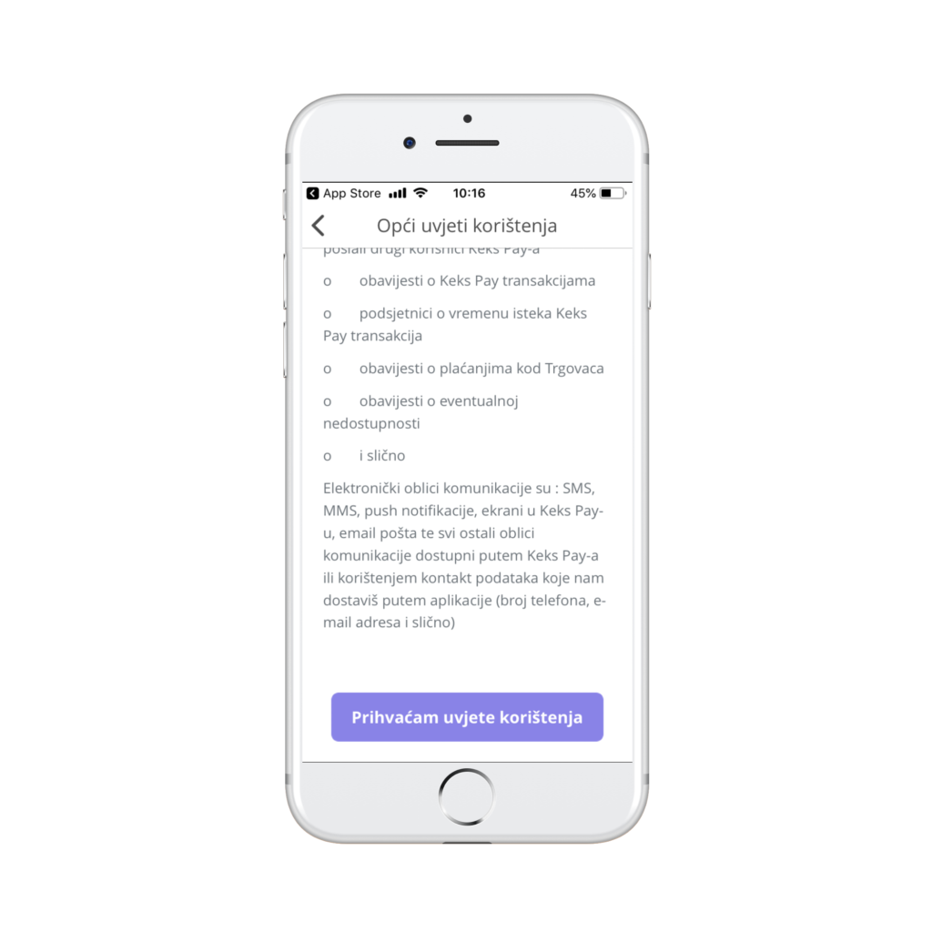 Za nastavak trebate prihvatiti opće uvjete korištenja, koje morate pročitati odnosno skrolati do kraja kako bi se pojavio gumb za prihvaćanje.