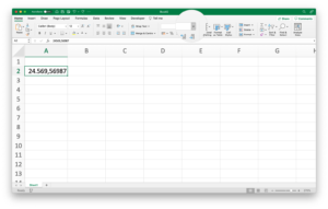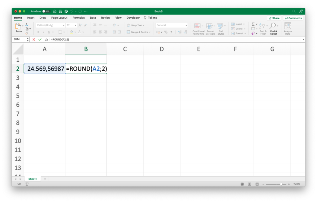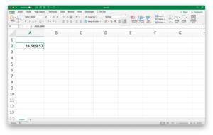Ako stavite =ROUND(A2;0), Excel će zaokružiti broj bez decimala, odnosno na 24.570.