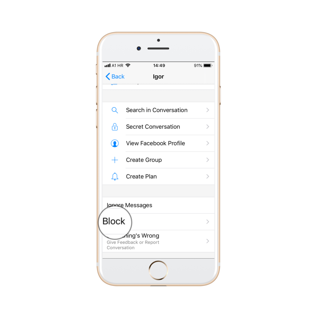 Odaberite osobu odnosno razgovor koji želite blokirati te će vam se ista pojaviti na ekranu.