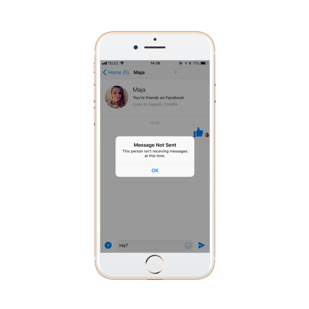 Ne mogu poslati poruku na mess kao da sam blokirana od strane te osobe a ista mi je na listi fb.prijatelja što me dodatno zbunjuje?