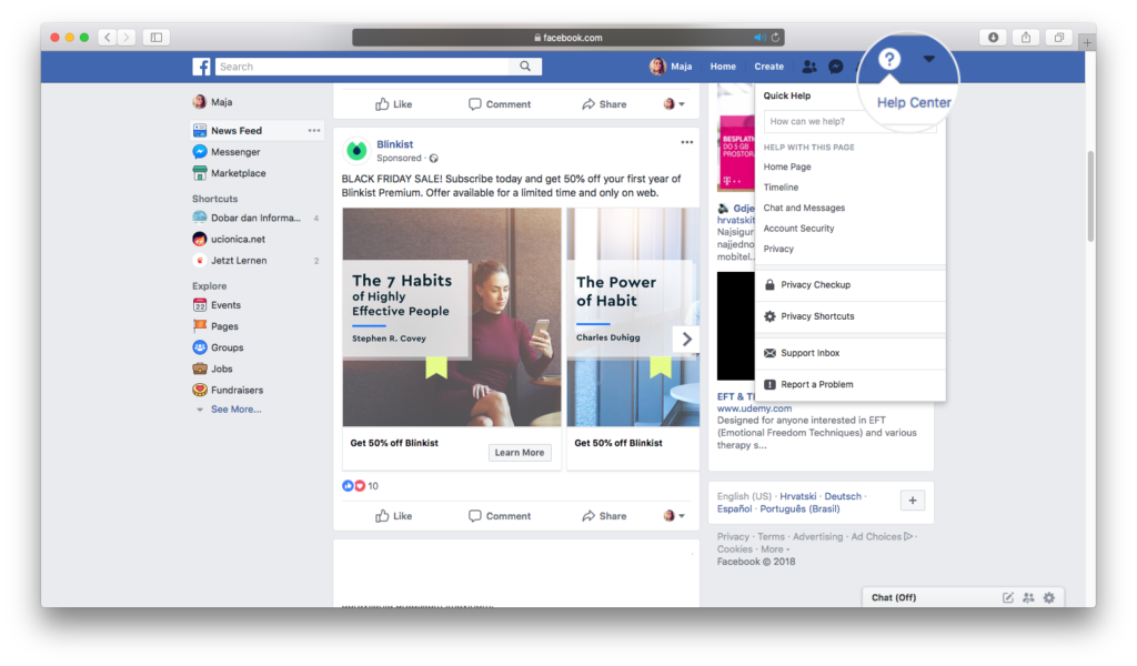 Facebook Help Centar vam može pomoći