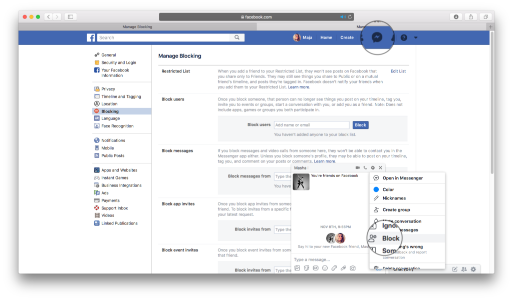 Desktop: blokiranje osoba na Messengeru