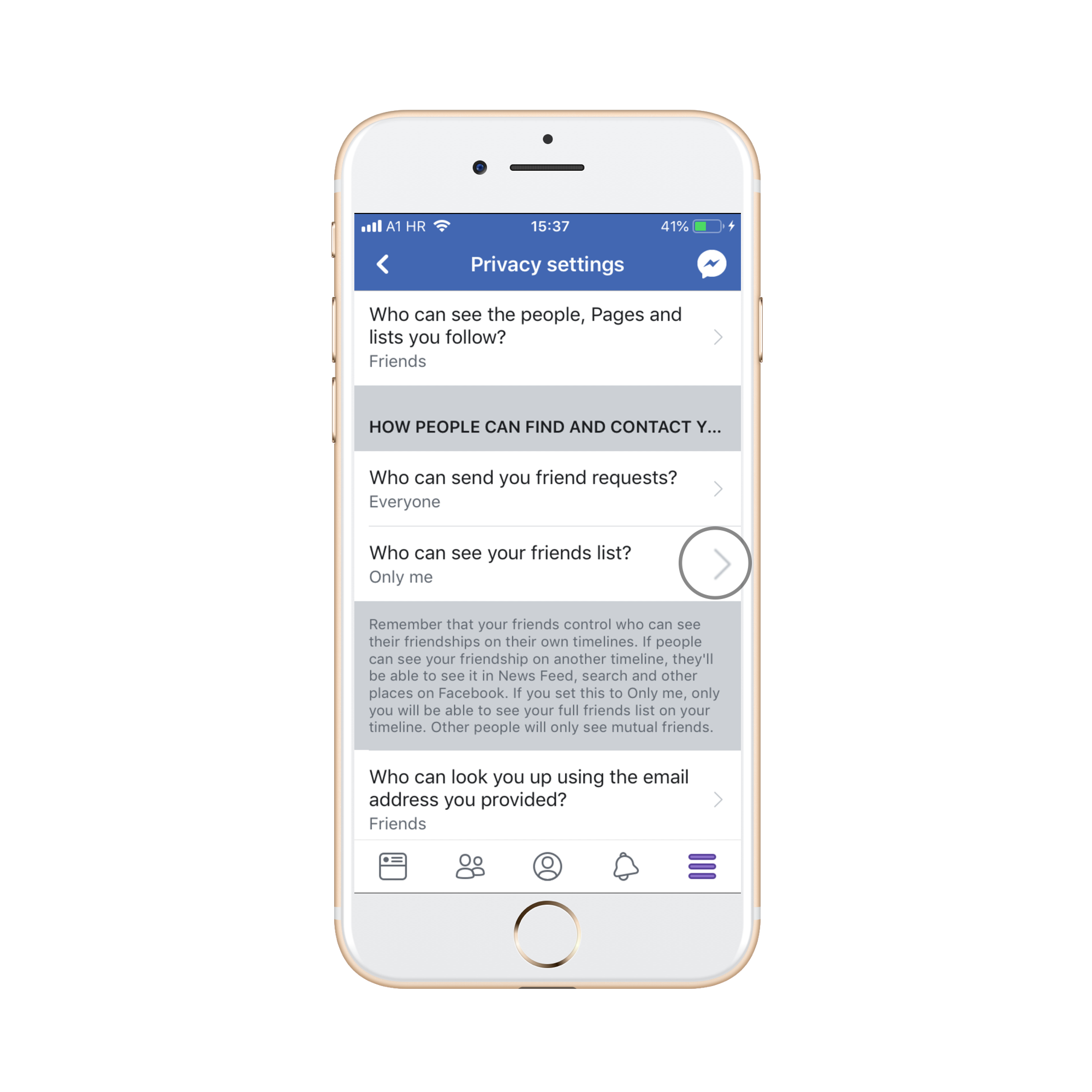 Želila bi da mi sakrijwta listu prijatelja na fb alo ma mobitelu hala