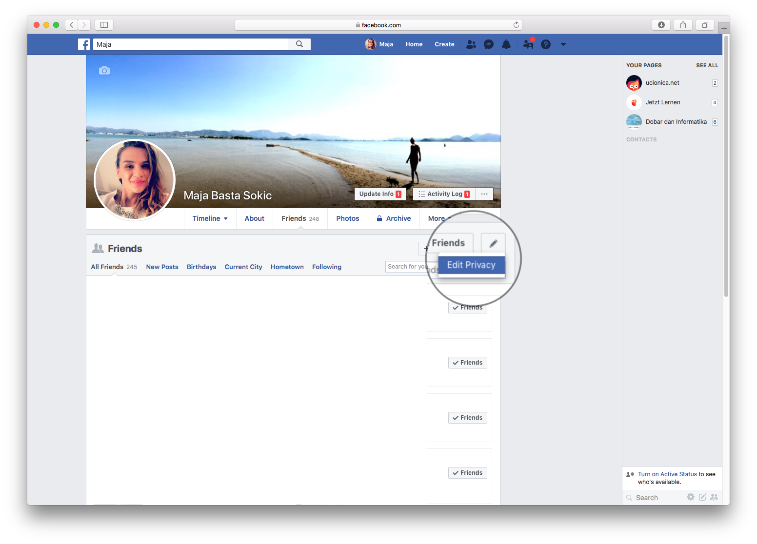 Nakon što ste odabrali Friends gumb, izlistat će vam se popis vaših prijatelja te ćete u desnom dijelu ekrana, i dalje ispod naslovne fotografije, pritisnuti na ikonu olovke kao Edit (Uredi) gumba.
