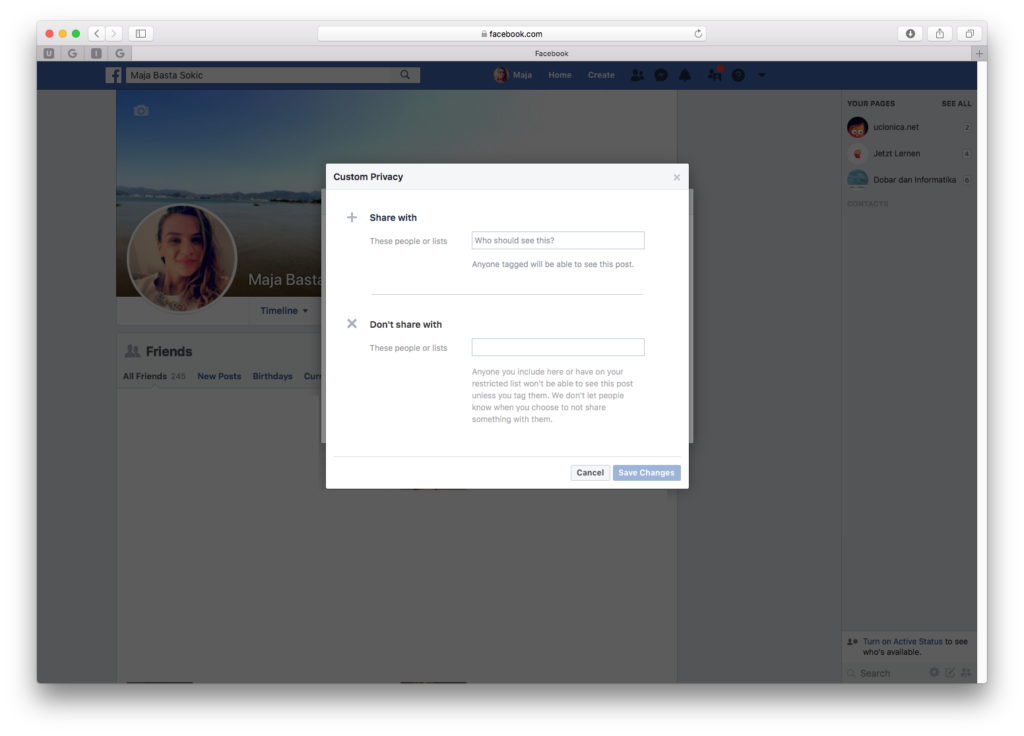 Custom odnosno prilagođena verzija je zamišljena tako da možete birati s kim ćete dijeliti listu (samo s prijateljima ili joj mogu pristupiti i prijatelji prijatelja), odnosno s kime izričito ne želite dijeliti listu pa tako možete odabrati pojedinačne ljude.