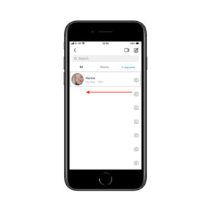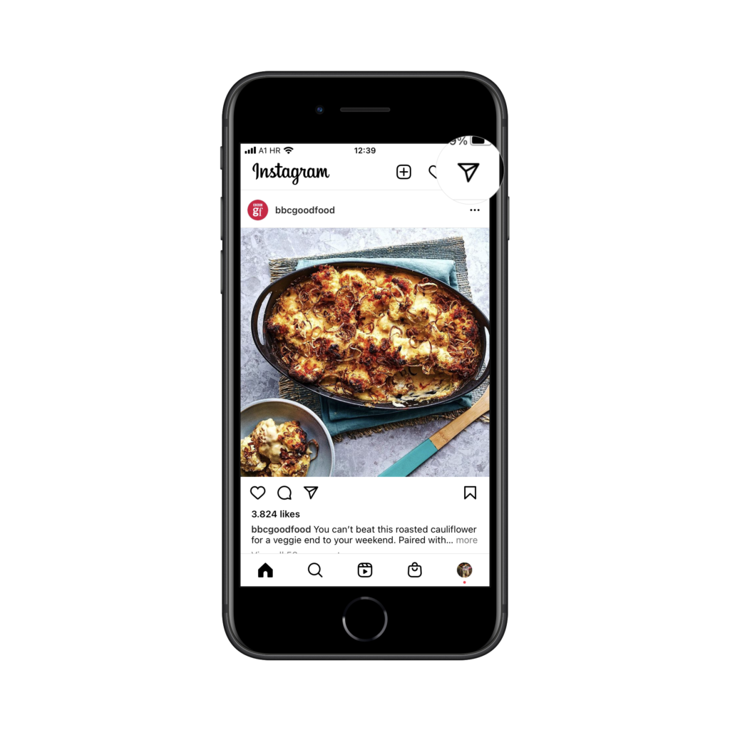 Idite na početni ekran i u gornjem desnom kutu kliknite ikonu strelice za ulazak u poruke (DM’s).