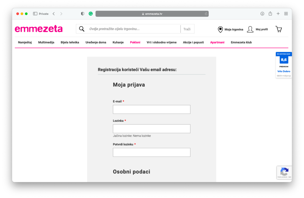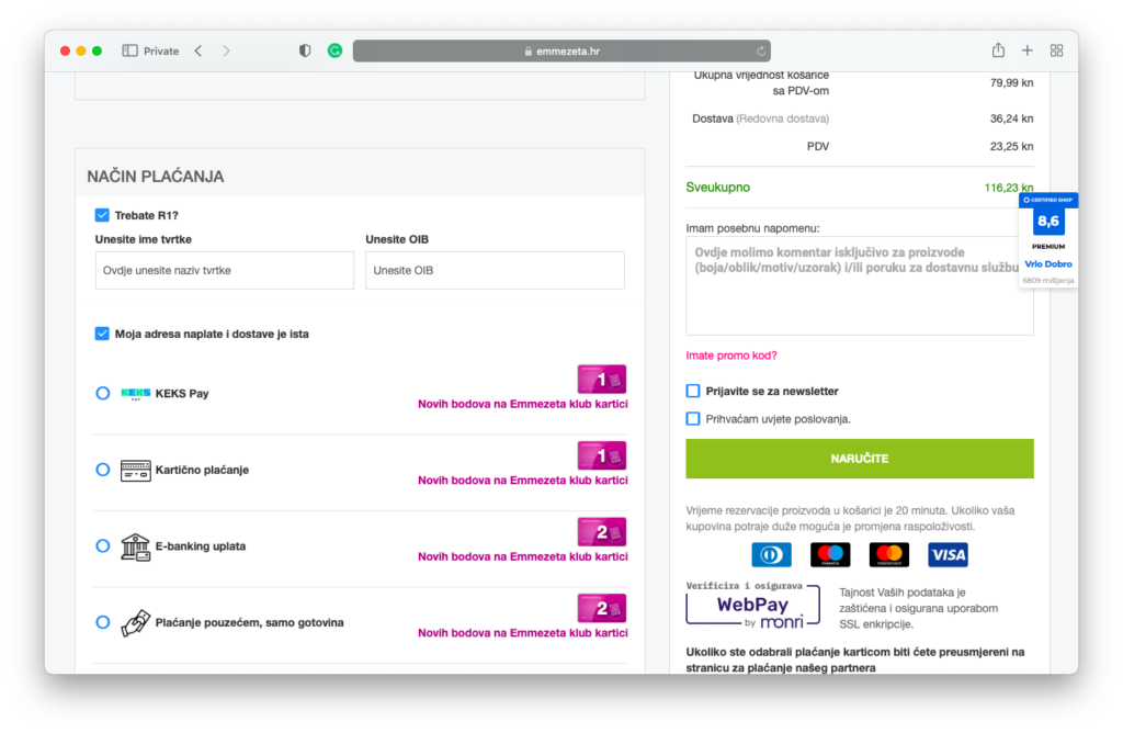 Preko emmezeta webshopa možete kupovati i kao tvrtka pa ako kupujete na R-1, kliknite polje Trebate R1? i ispunite tražene podatke.