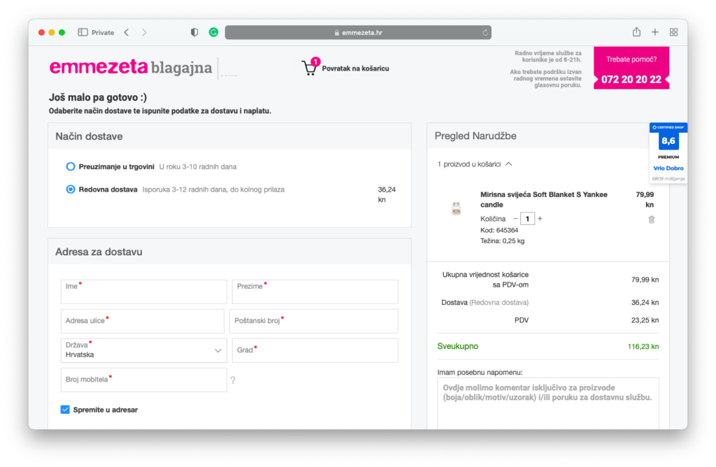 U sljedećem koraku ćete upisati adresu za dostavu.