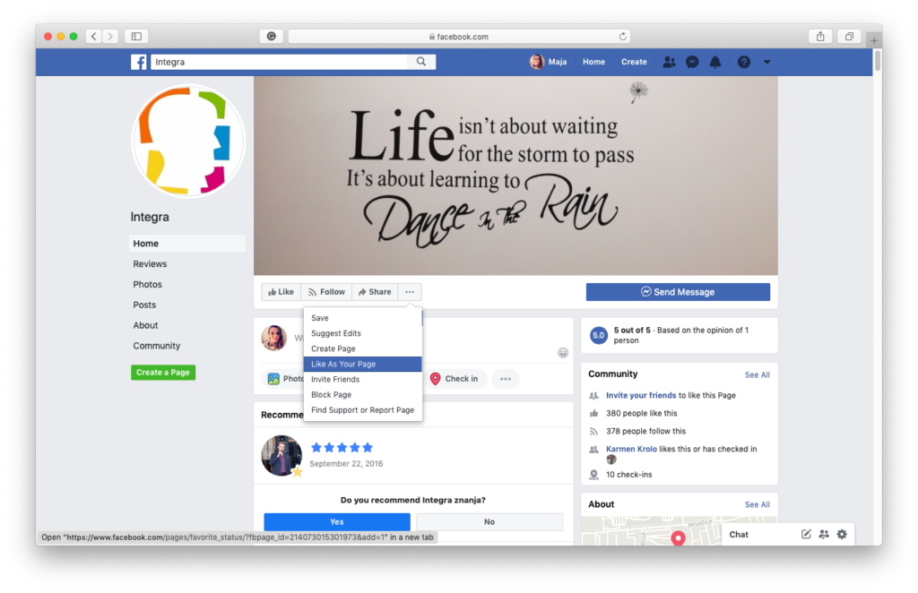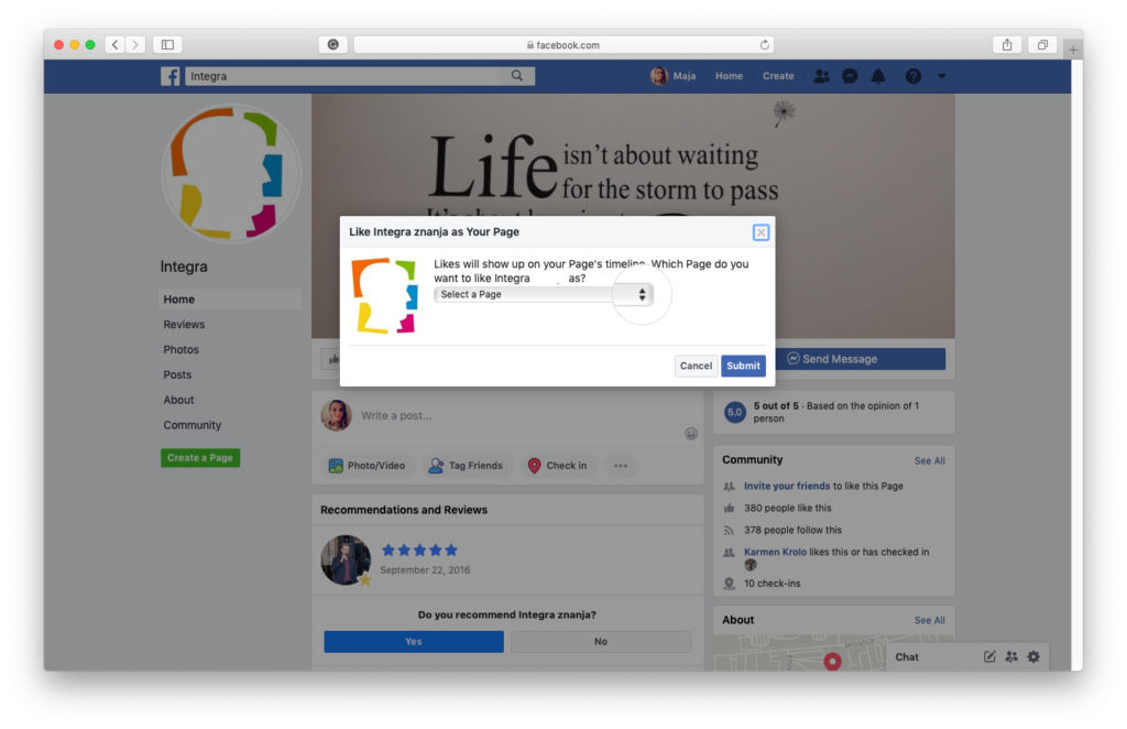 Kako lajkati kao Facebook stranica