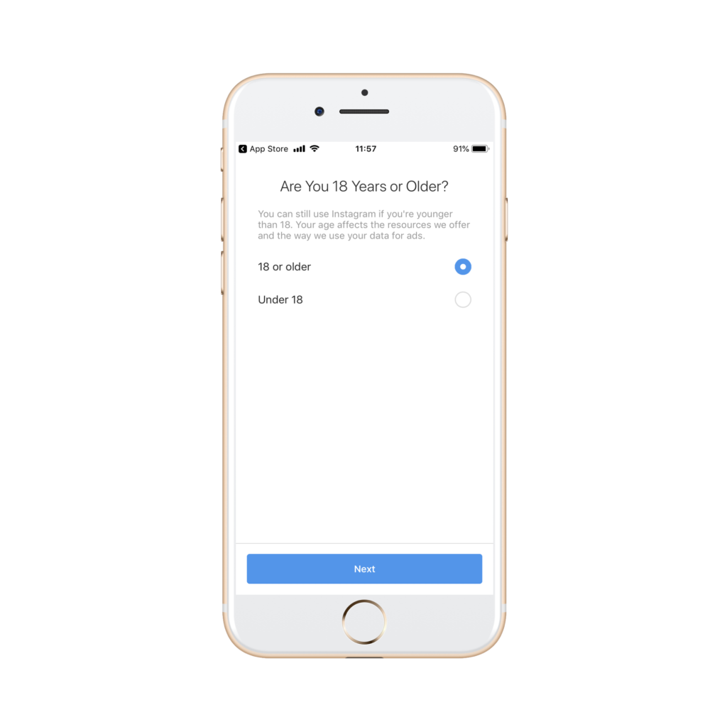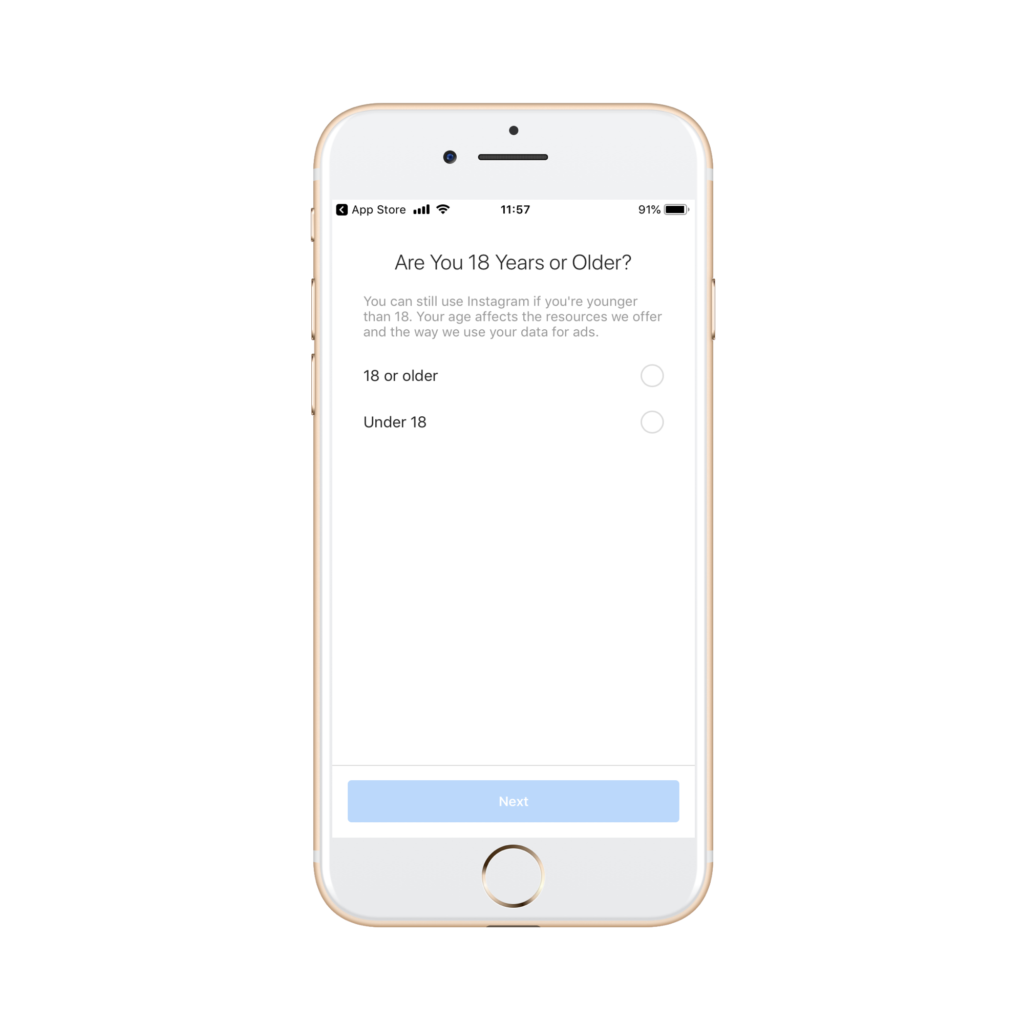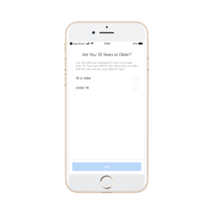 U ovom koraku ćete morati označiti spadate li u dobnu skupinu 18 i starije (18 or older) ili ispod 18 godina starosti (Under 18).