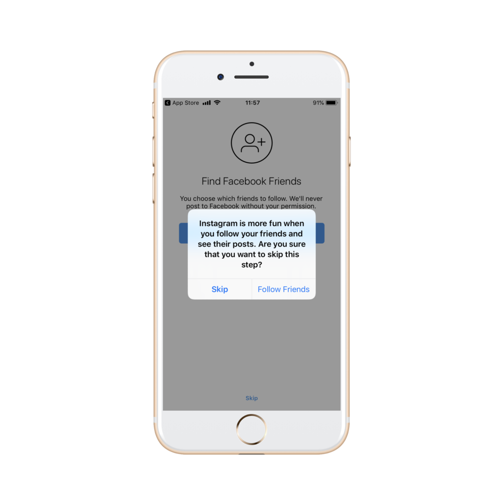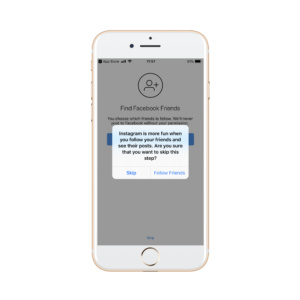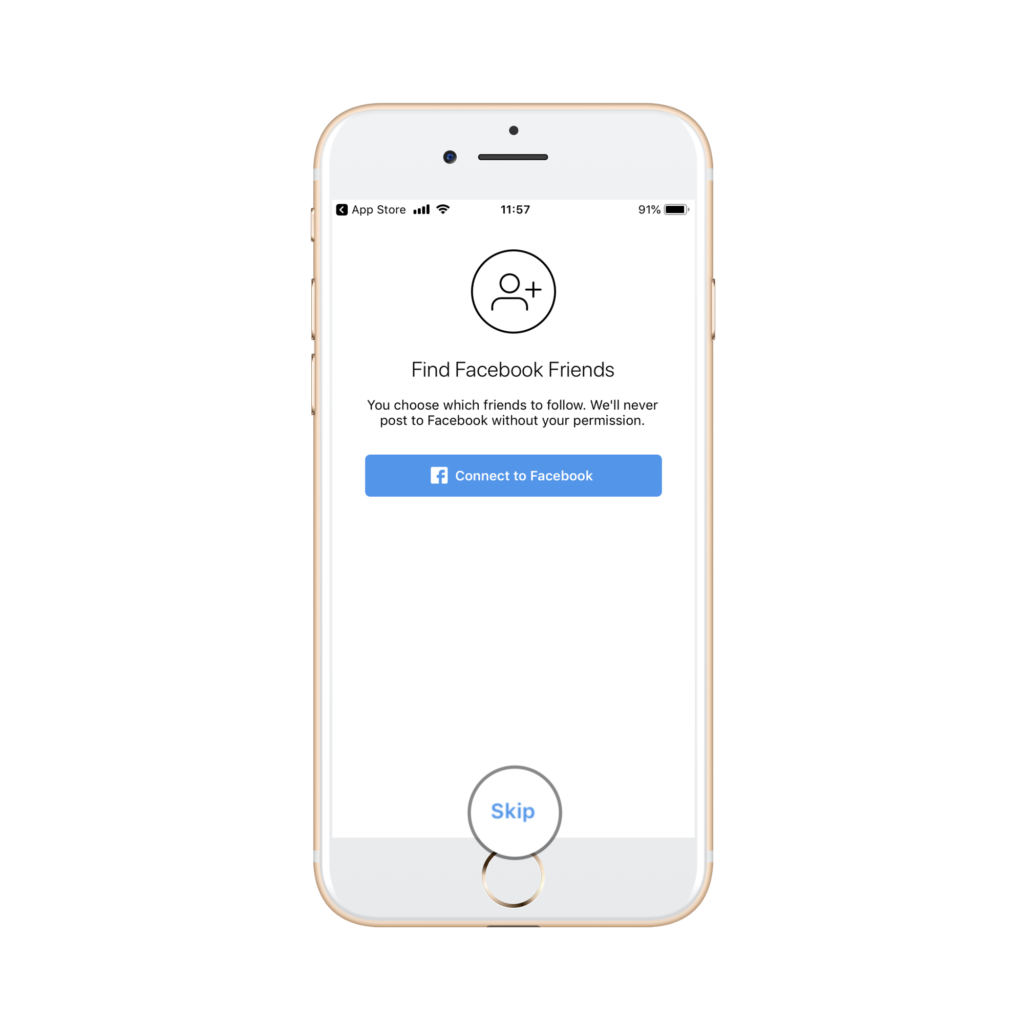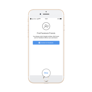 U ovom trenutku postavljanja profila ćete moći odabrati želite li pronaći na Instagramu osobe koje su vam Facebook prijatelji. Ukoliko želite, pritisnite Connect to Facebook, ukoliko ne želite, samo pritisnite Skip.