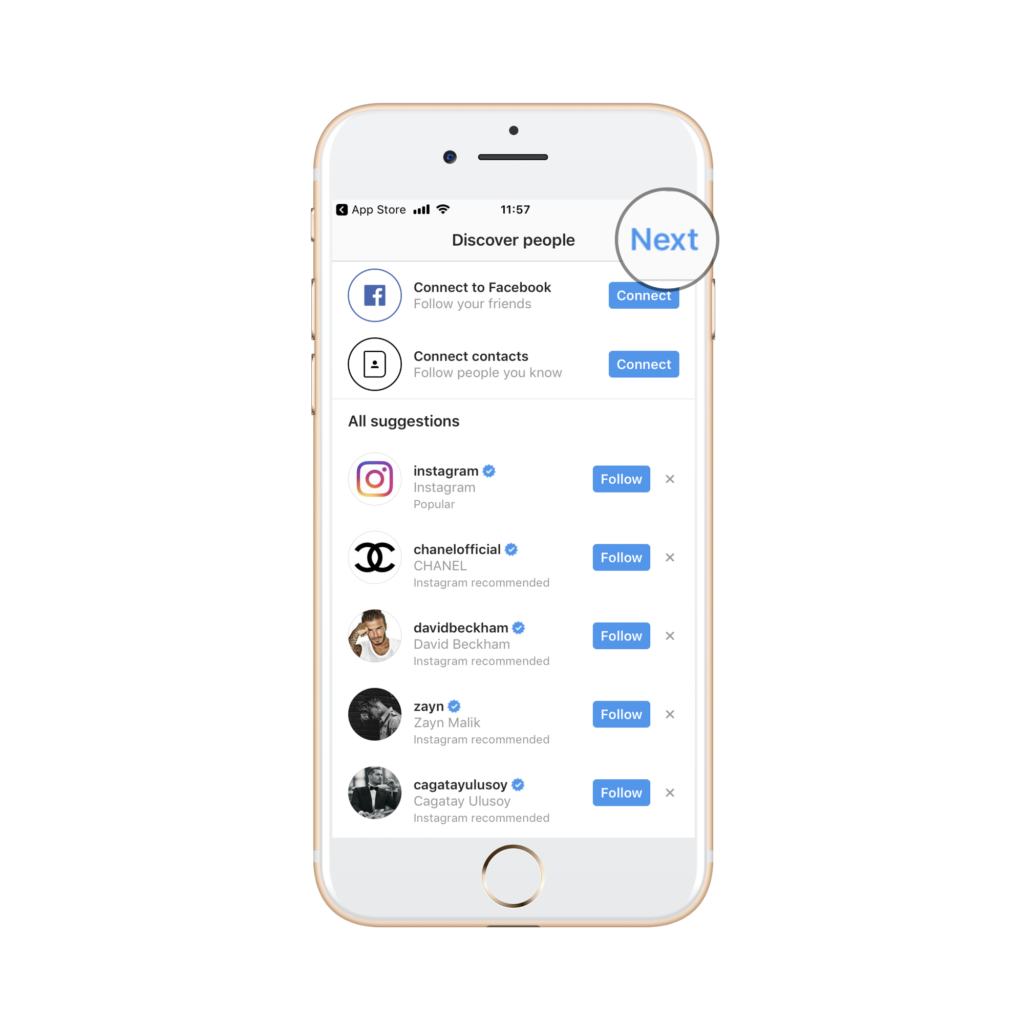 Sve što trebate jest stisnuti Follow (Slijedi), a ako ne želite ništa od navedenog slijediti, pritisnite Next (Dalje) u gornjem desnom dijelu ekrana.