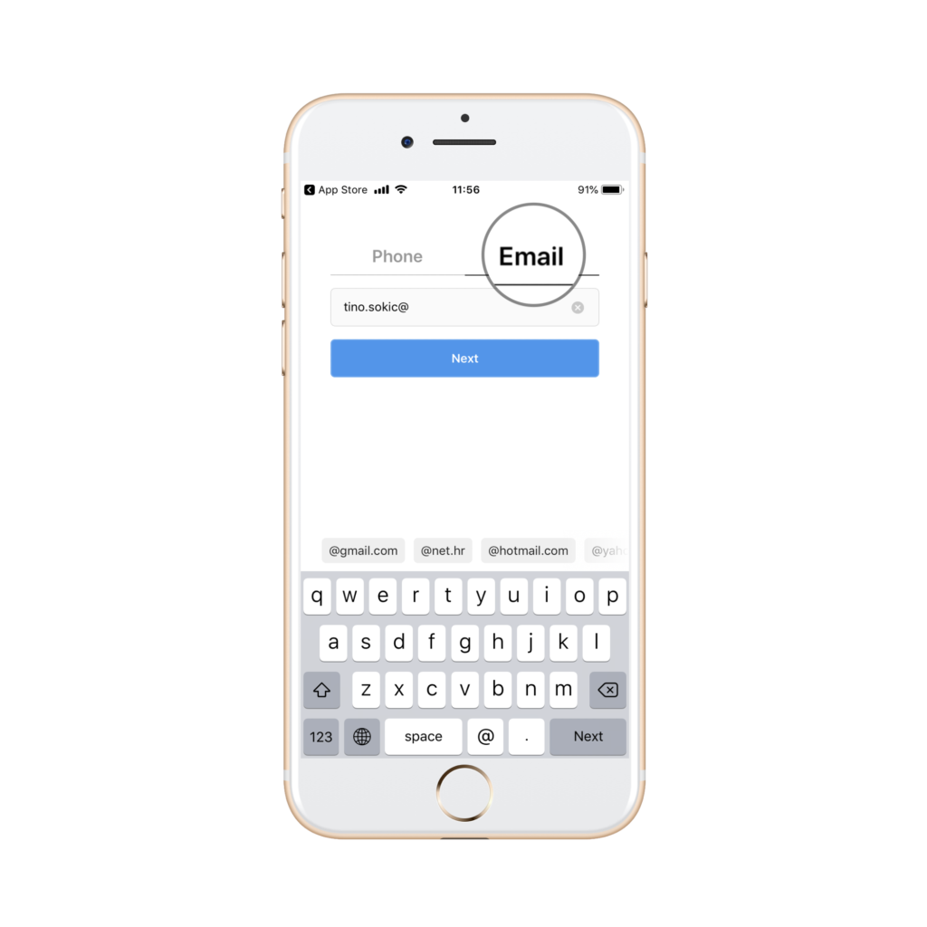 Odaberite Sign up with Phone or Email (Prijava preko broja mobitela ili e-maila).