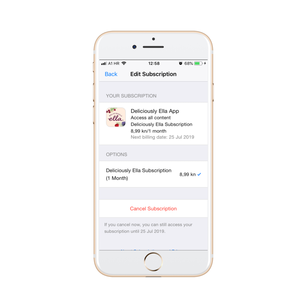 Kliknite na aplikaciju kojoj želite prekinuti pretplatu i na ekranu koji će se otvoriti kliknite Cancel Subscription (Otkaži pretplatu).