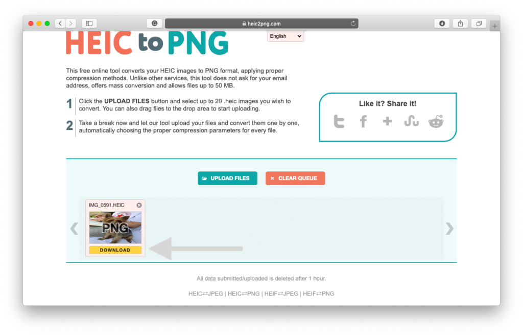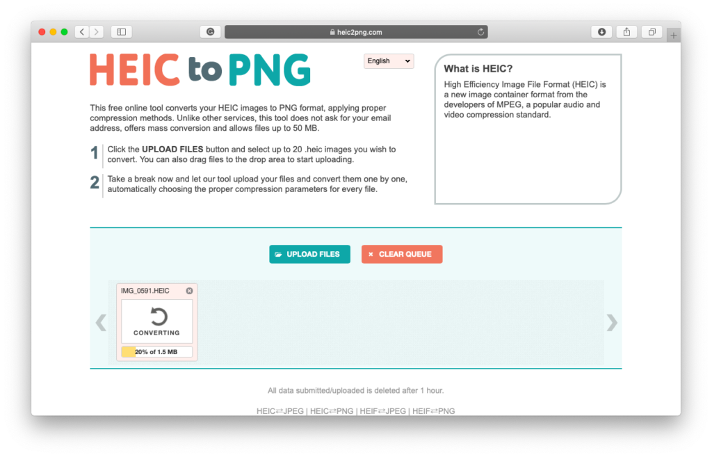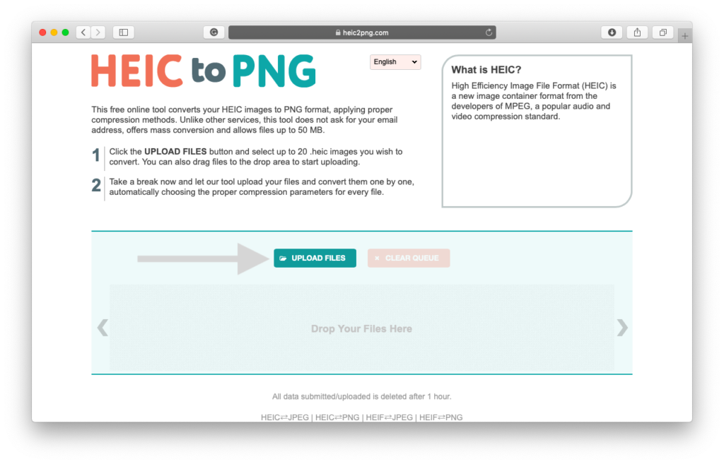 Postoji mnogo online i besplatnih servisa pomoću kojih možete prebaciti HEIC format u PNG, a mi smo za potrebe vodiča odabrali jedan od njih kojem možete pristupiti pritiskom na LINK.