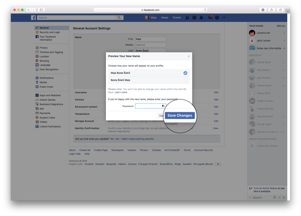 Ime ili prezime na Facebooku se može promijeniti na vrlo jednostavan način, pri čemu imajte na umu da Facebook dopušta jednu promjenu imena svakih 60 dana.