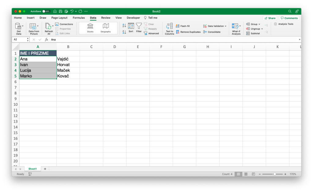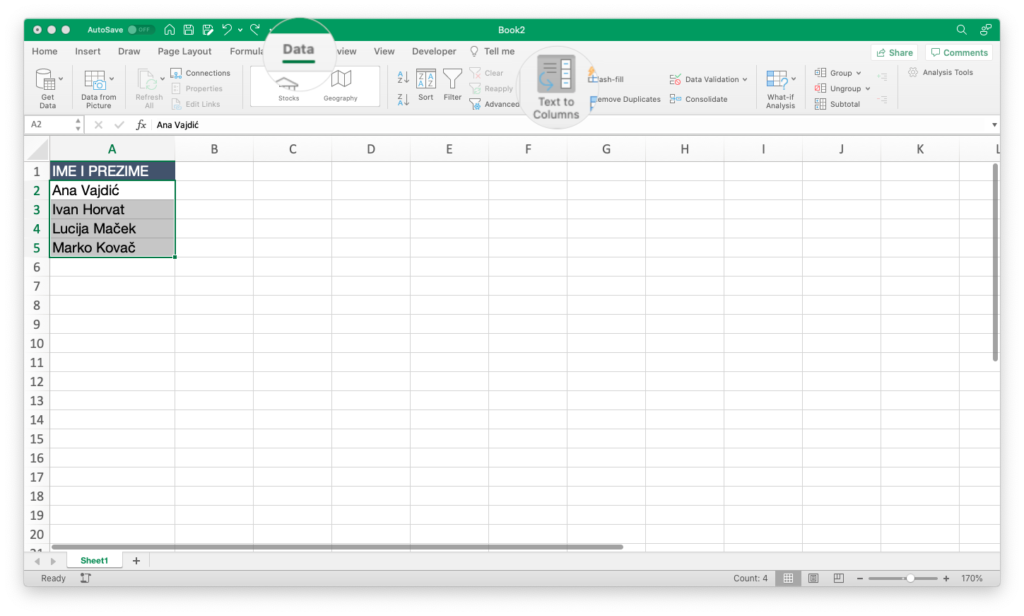 Kako razdvojiti ime i prezime u Excelu u 5 klikova