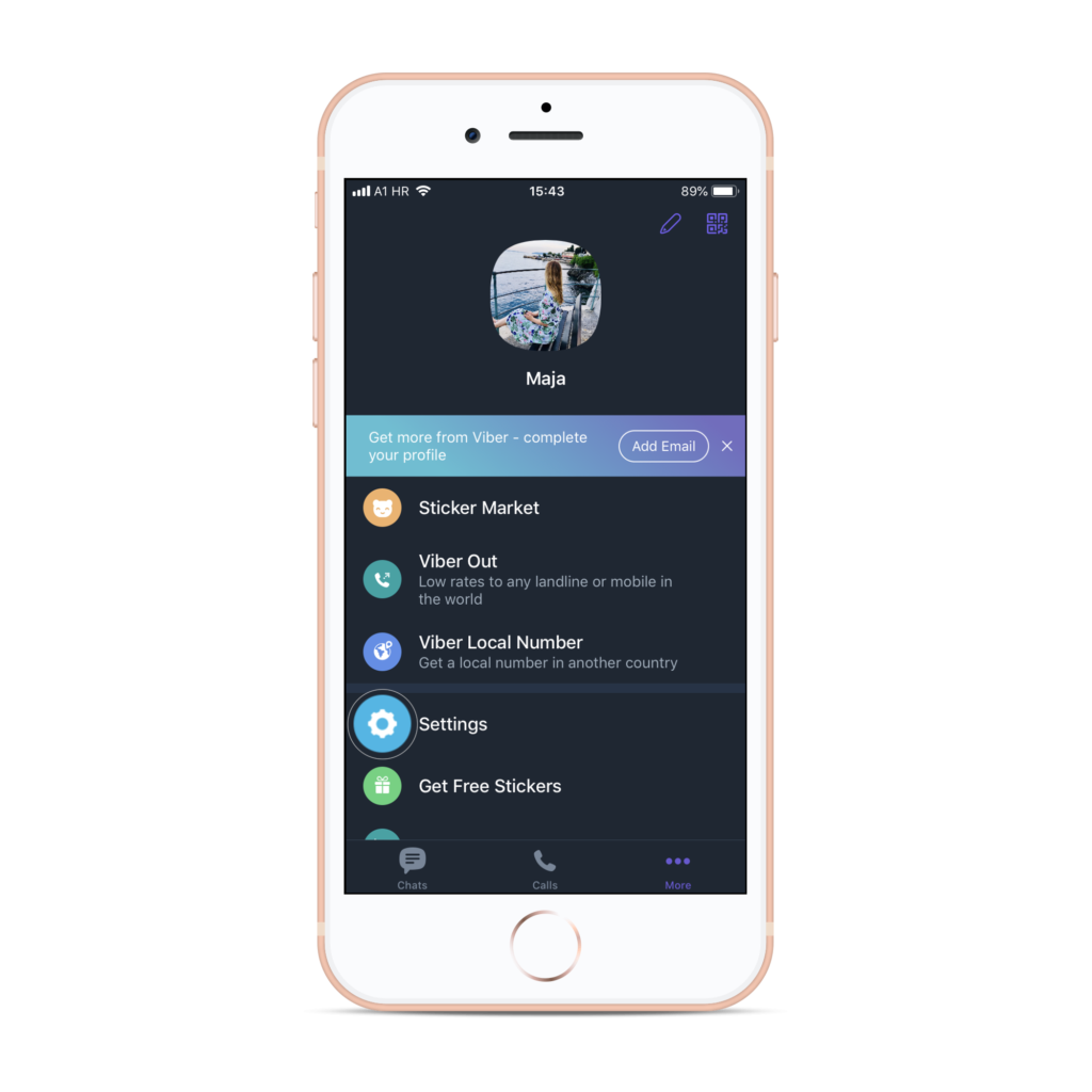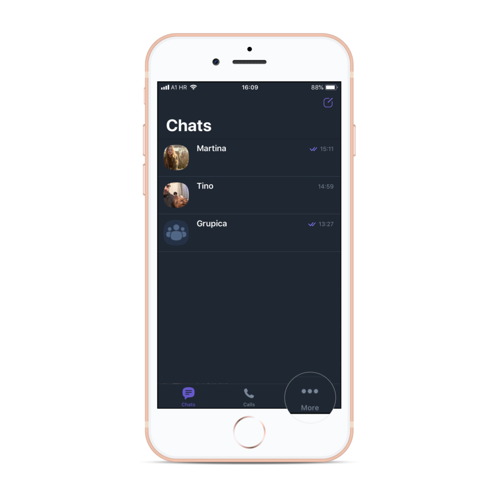 Otvorite Viber aplikaciju, pozicionirajte se na razgovore (Chats) i u alatnoj traci na dnu ekrana odaberite ikonu s tri točkice za More (Više).