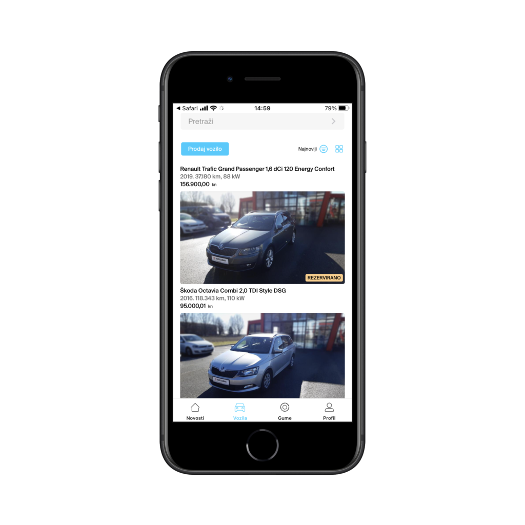 Na tabu Vozila možete pregledavati, kupiti, slati upite, ponuditi drukčiju cijenu, rezervirati testnu vožnju ponuđenih vozila ili predati vlastiti oglas.
