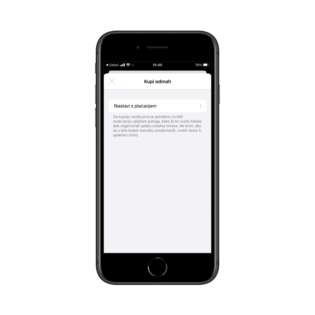 Cjelokupni proces kupnje, uključujući i plaćanje, možete obaviti putem interneta. Vozilo naravno možete pregledati i uživo prije nego se finalno odlučite na kupnju. Svi podaci potrebni za pregled i kupnju auta se nalaze u aplikaciji.