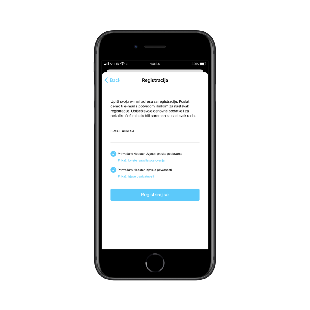Upišite e-mail adresu (kojoj imate pristup), prihvatite Uvjete korištenja i Izjavu privatnosti te idite u mail i kliknite gumb Potvrdi za nastavak registracije.