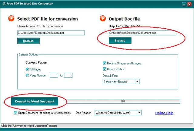 Ovdje imate opciju izabrati gdje želite spremiti konvertirani dokument (Output Doc File -> Browse). Po defaultu program sprema na istu lokaciju gdje je i originalni dokument.