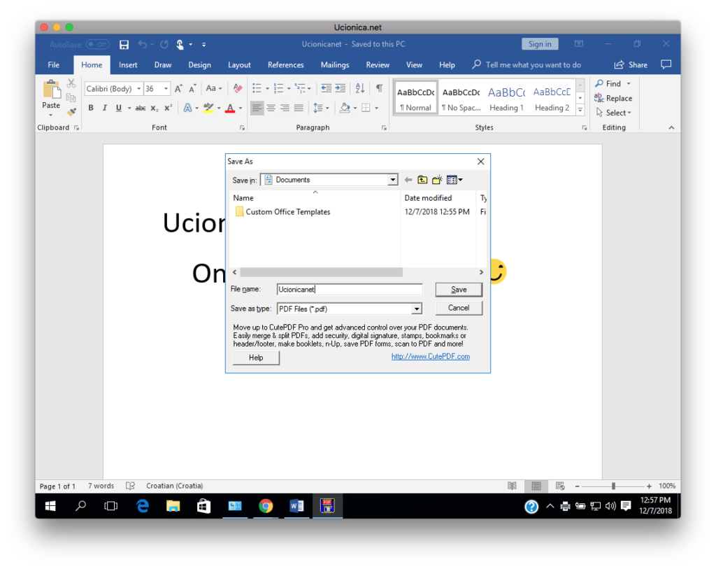 Za konverziju ili pretvorbu iz Worda u PDF koristit ćemo besplatan PDF printer po nazivu CutePDF Writer. Program, odnosno instalacijski paket preuzmite OVDJE.