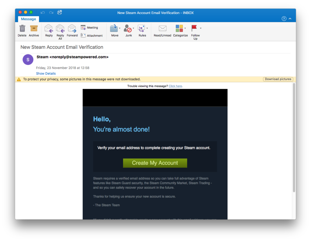 U prikazu možete vidjeti kako izgleda e-mail potvrda, te sve što trebate jest pritisnuti zeleni gumb Create My Account (Kreiraj moj korisnički račun).