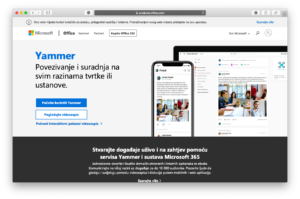 Yammer je privatna platforma za društvene mreže koja omogućuje povezivanje s timovima i pojedincima, organiziranje projekata i nastavnih programa te razmjenu informacija. Kažemo privatna platforma jer sva komunikacija može biti vidljiva samo internim osobama iz vaše tvrtke, ustanove ili organizacije.