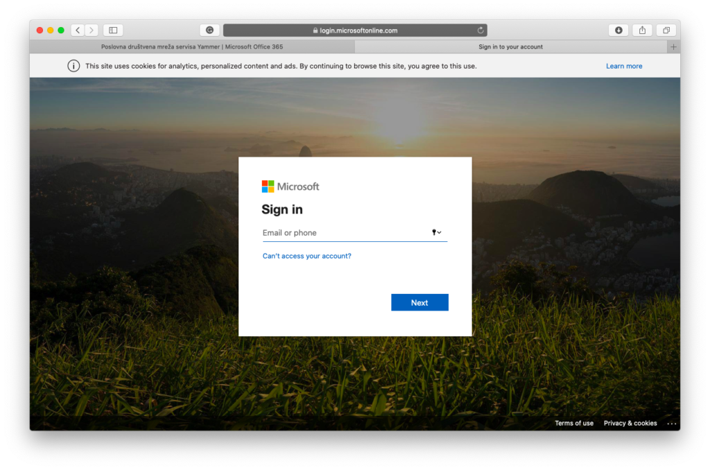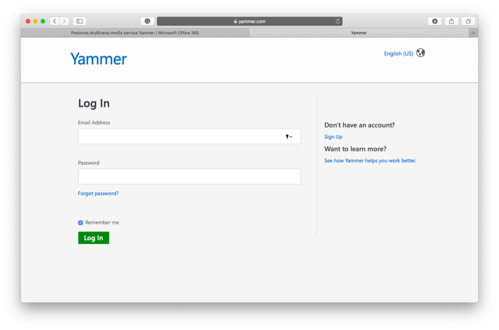 Yammer pripada alatu Office 365 te će vam za prijavu biti potreban Microsoft račun. Ova platforma se često koristi za poslovne svrhe, ali i za potrebe održavanja nastave pa je tako dostupna svim nastavnicima i učenicima koji imaju pristup Office 365 alatima.