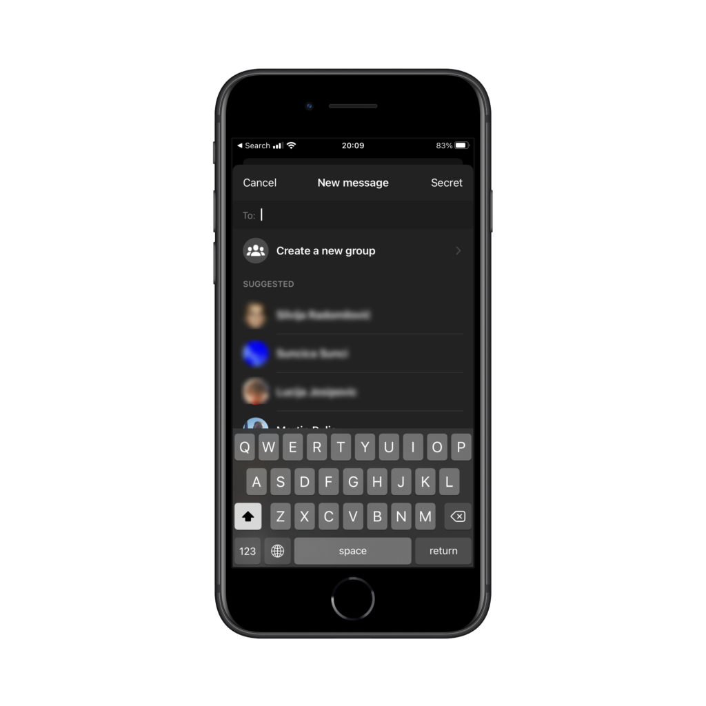 - Dodirnite Secret (Tajno) i daberite kontakt s kojim želite započeti svoj tajni razgovor.