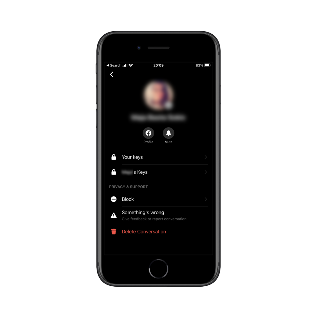 Kao dodatnu mogućnost u detaljima razgovora nakon što odaberete profilnu sliku sugovornika (gore lijevo u razgovoru) imate priliku pregledati ključeve razgovora.