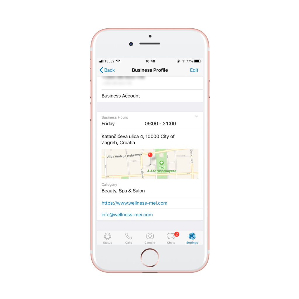 WhatsApp Business je besplatna aplikacija namijenjena vlasnicima malih biznisa. Aplikacija omogućuje jednostavnu komunikaciju s vašim kupcima ili klijentima te sadrži alate za automatizaciju, sortiranje i jednostavno odgovaranje na poruke. Za razliku od običnog, business profil ima dodatne opcije kao što su radno vrijeme, lokacija, web adresa, itd.