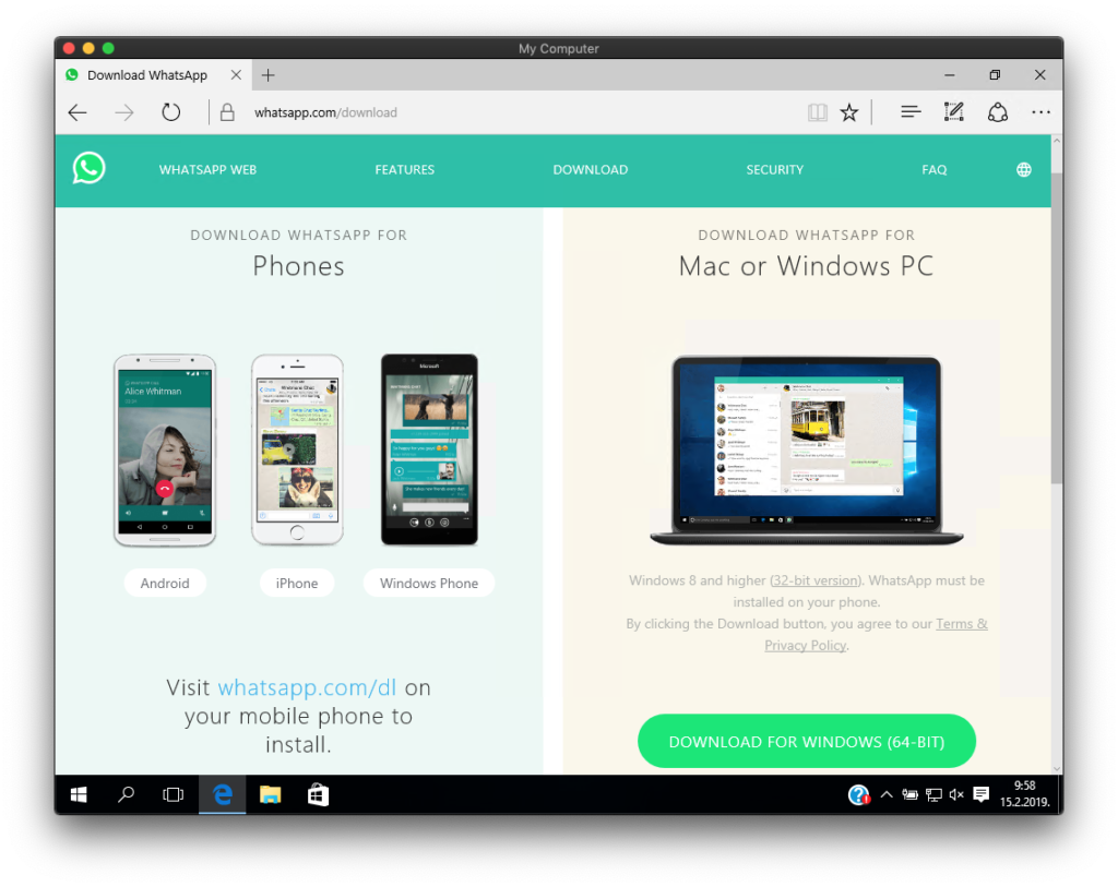 Na svom računalu pokrenite svoj omiljeni internetski preglednik i posjetite službene stranice WhatsAppa putem ove POVEZNICE (link), te pokrenite preuzimanje i instalaciju WhatsApp aplikacije za svoje Windowse.