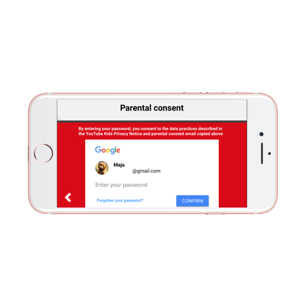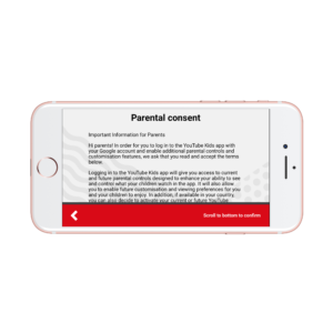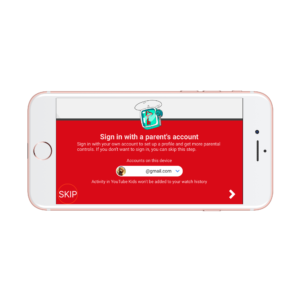 U ovom koraku slijedi prijava u aplikaciju putem postojećeg roditeljevog YouTube profila.