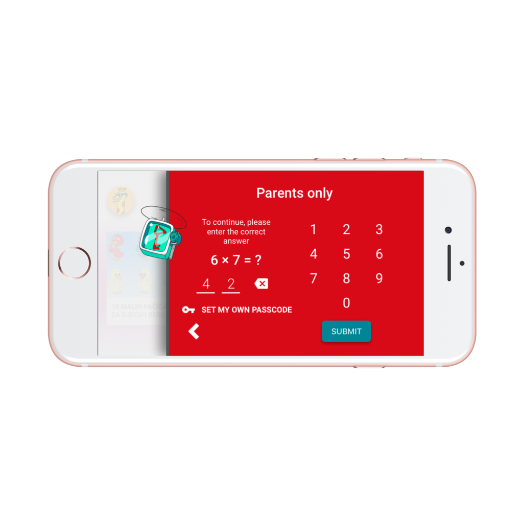 Kako biste se osigurali da ćete postavkama profila moći pristupiti samo vi, a ne i dijete, pritiskom na profil aplikacija će vas tražiti unos rješenja neke jednostavne matematičke operacije. Upišite rješenje i pritisnite Submit (Predaj).