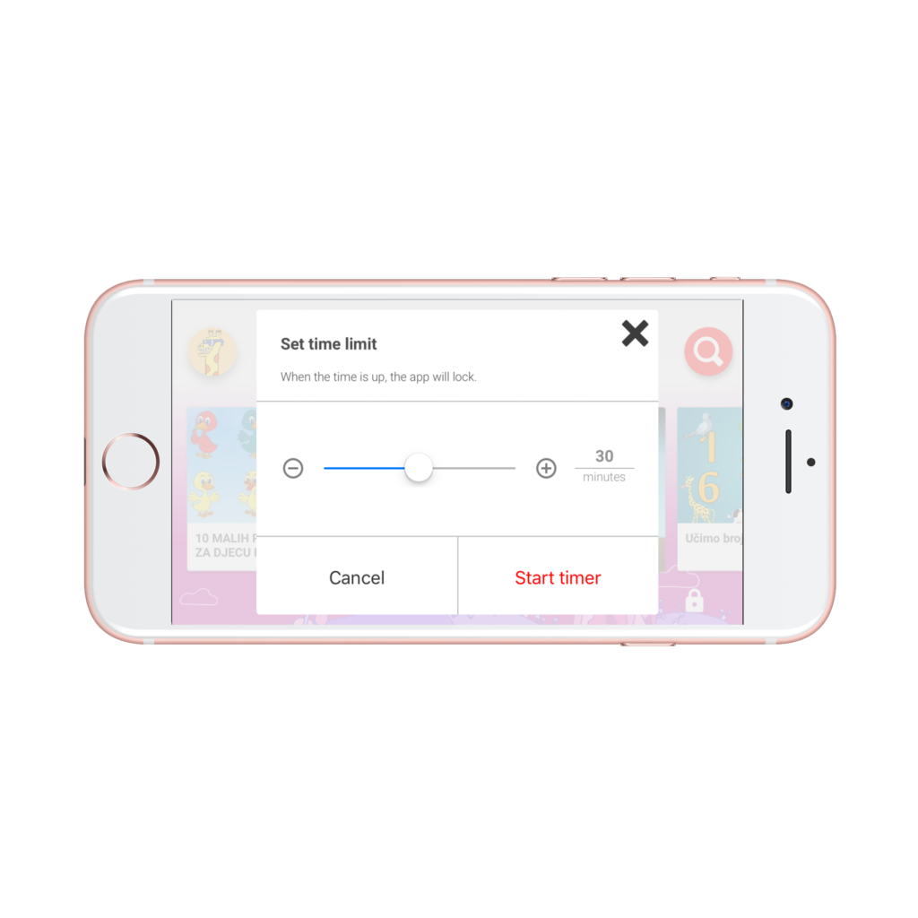 Povlačenjem prsta odaberite period trajanja i potvrdite pritiskom na Start timer (Pokreni brojač) kako biste bili sigurni da će dijete imati limit prikaza.