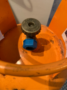 Nakon toga, možete spojiti crijevo na plinsku bocu. Važno je paziti na smjer okretanja matice (zatežete u smjeru suprotnom od smjera kazaljki na satu).