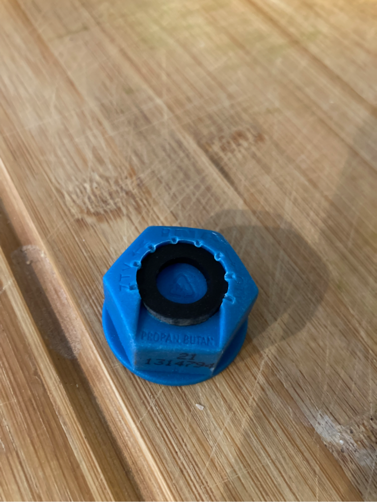 Matica koja spaja crijevo i plinsku bocu na sredini ima zareze što znači da se vrti u suprotnom smjeru od uobičajenog.