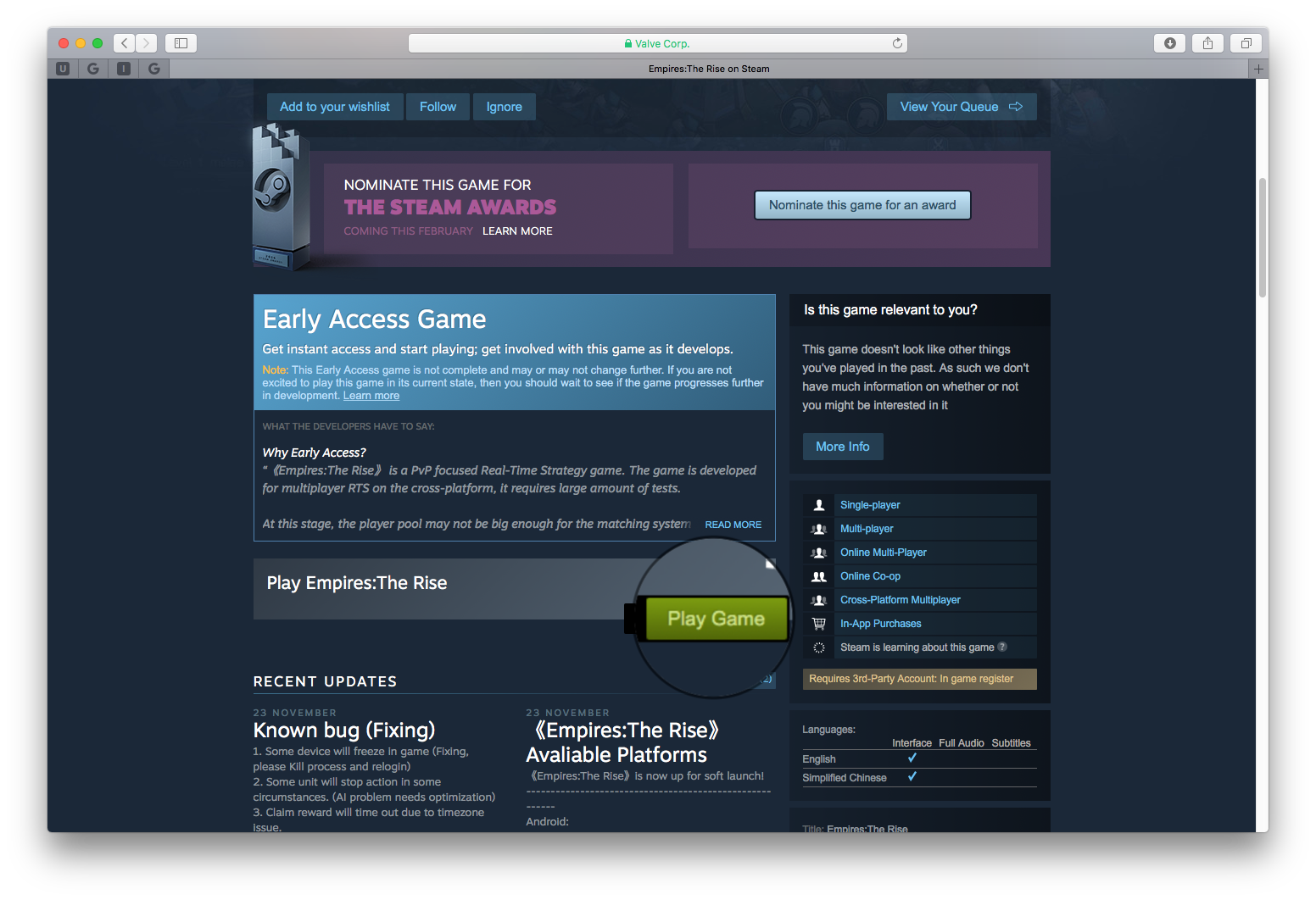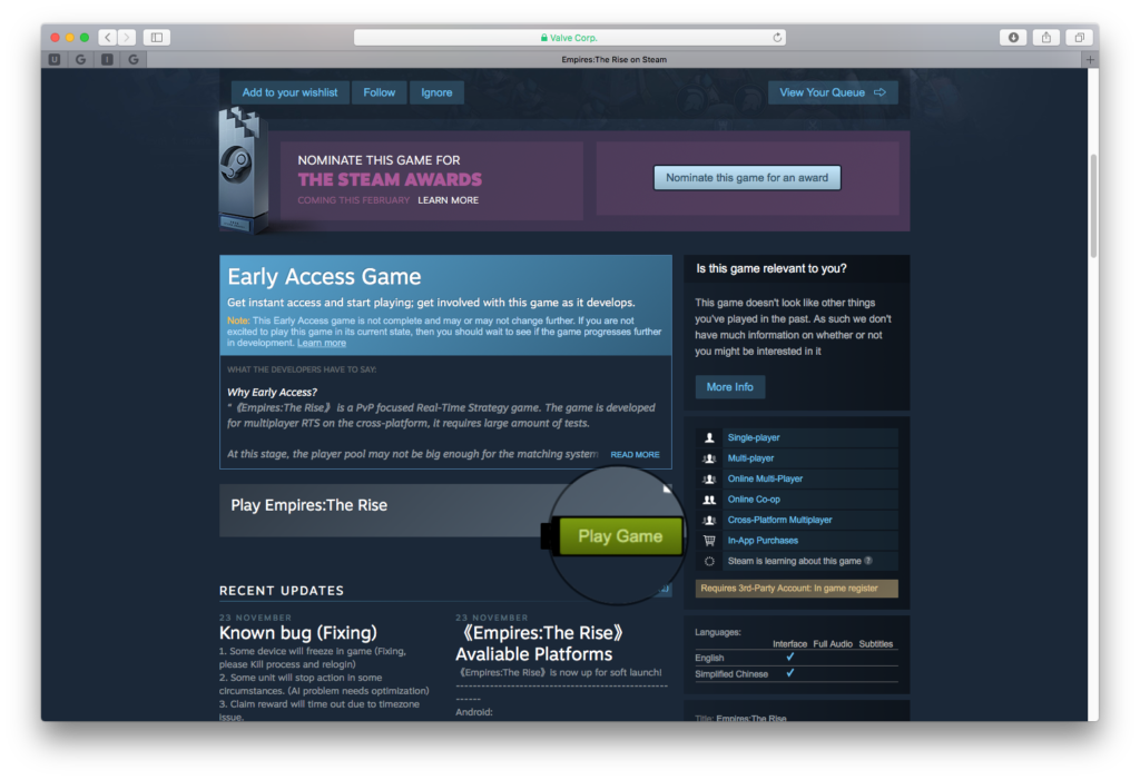 Pritisnite Play Game (Igraj igru), nakon toga će vas Steam pitati gdje želite instalirati igru, koliko je ona velika i koliko će trajati skidanje.