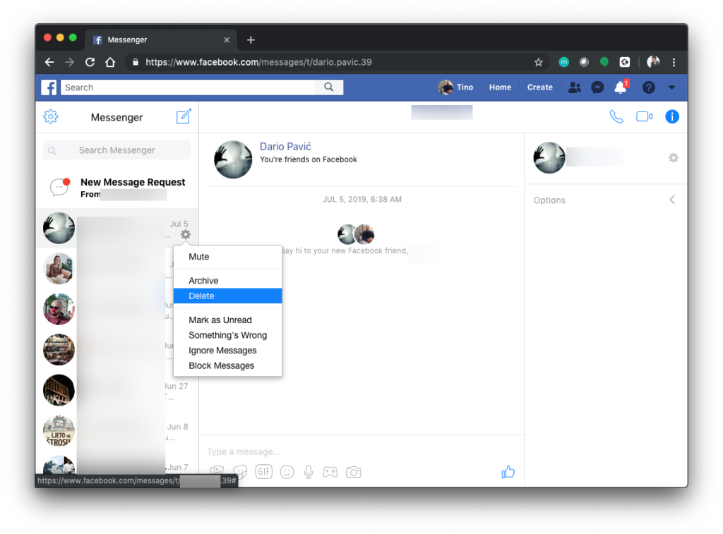 Brisanje kontakta iz Facebook Messengera