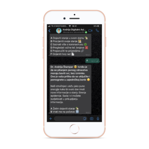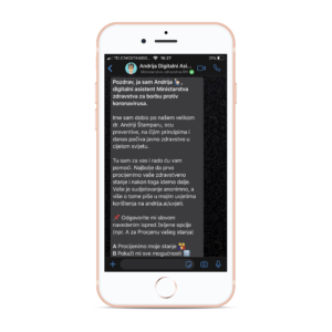 Asistent Andrija je dobio ime po ocu medicine dr. Andriji Štamparu. Već humanizirani program Andrija je izgrađen na platformi WhatsApp Business API, te ga lako možete kontaktirati i razgovarati s njim putem svog WhatsAppa.