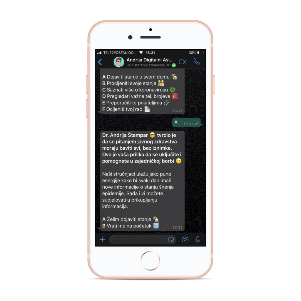 Naučite kako se boriti protiv koronavirusa pomoću pristupačnog digitalnog asistenta Andrije - jednostavno ga kontaktirajte pomoću svojeg WhatsAppa.