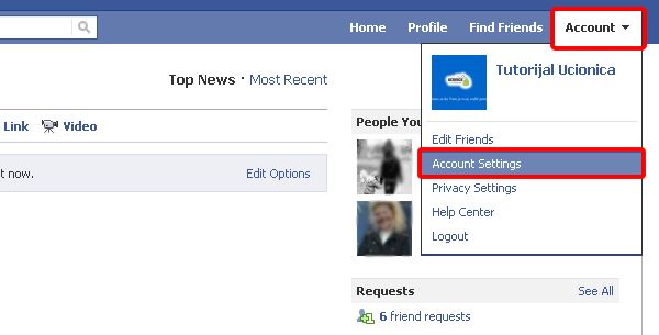 Ulogirajte se na vaš facebook korisnički račun. Kliknite na Account i zatim na Account Settings.